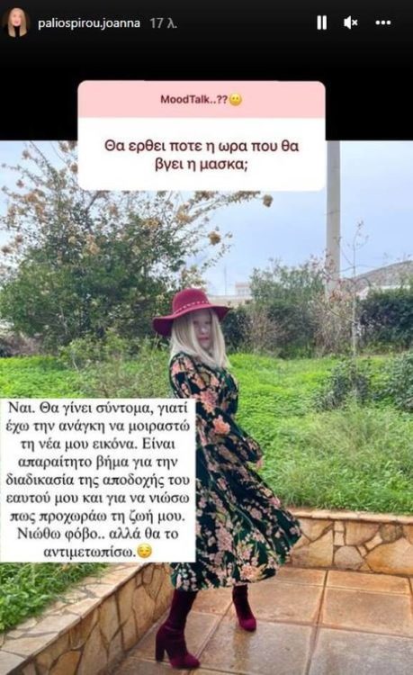 H Ιωάννα Παλιοσπύρου απάντησε σε ερωτήσεις διαδικτυακών της φίλων και μεταξύ άλλων, έκανε γνωστό το πότε θα βγάλει την μάσκα.