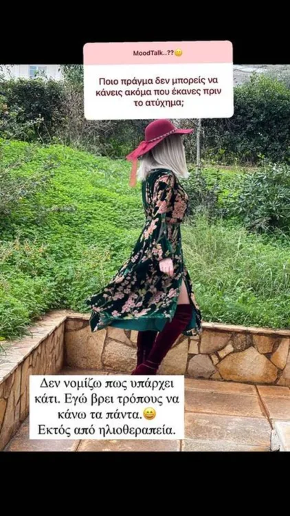 Η Ιωάννα αναφέρει, μεταξύ άλλων, ότι «έχω βρει τρόπους να κάνω τα πάντα εκτός από ηλιοθεραπεία».