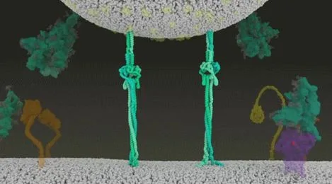 Κάθε σωματίδιο ιού SARS-CoV-2 έχει μία εξωτερική επιφάνεια με 24-40 τυχαία διατεταγμένες πρωτεΐνες-ακίδες που είναι το κλειδί για τη σύνδεση με τα ανθρώπινα κύτταρα. Για άλλους τύπους ιών, όπως της γρίπης, οι εξωτερικές πρωτεΐνες σύνδεσης/σύντηξης είναι σχετικά άκαμπτες. Ωστόσο, οι ακίδες του SARS-CoV-2 είναι εξαιρετικά ευέλικτες και αρθρώνονται σε τρία διαφορετικά σημεία. Αυτό επιτρέπει στις ακίδες να περιστρέφονται και να ταλαντεύονται, γεγονός που διευκολύνει τη σάρωση της επιφάνειας του κυττάρου και την ταυτόχρονη σύνδεση πολλών αιχμών σε ένα ανθρώπινο κύτταρο. Δεν υπάρχουν παρόμοια πειραματικά δεδομένα για άλλους κορονοϊούς, αλλά επειδή οι αλληλουχίες πρωτεϊνών-ακίδων εμφανίζονται διατηρημένες στην εξέλιξη των κορονοϊών, μάλλον πρόκειται για κοινό χαρακτηριστικό των ιών αυτής της οικογένειας.