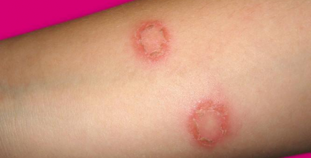 Ονομάζεται και “Ringworm” ή “Tinea”. Είναι η κοινή μυκητιασική λοίμωξη στο δέρμα που συνήθως επηρεάζει διάφορα σημεία σε όλο το σώμα (tinea corporis), το τριχωτό της κεφαλής (tinea capitis), τα πόδια (tinea pedis, ή “πόδι του αθλητή”) και τη βουβωνική χώρα (tinea cruris). Δείτε όλα όσα πρέπει να ξέρετε για την μυκητιασική δερματική λοίμωξη και πώς θα την αναγνωρίσετε στο δέρμα σας: Μήπως Ringworm (σ.σ. worm = σκουλήκι στα αγγλικά) σημαίνει ότι έχω τα σκουλήκια; Όχι η πάθηση δεν προκαλείται από κάποιο σκουλήκι. Είναι μια μυκητιασική λοίμωξη που συχνά σχηματίζει ένα εξάνθημα σε σχήμα δακτυλίου. Μπορεί να έχει ένα κόκκινο κέντρο ή κανονικό τόνο του δέρματος στο εσωτερικό του δακτυλίου. Τι προκαλεί την λοίμωξη; Ορισμένοι μύκητες μπορεί να βοηθούν το σώμα, αλλά ένας τύπος δερματόφυτου μύκητα που προκαλεί την λοίμωξη αυτή, ερεθίζει το δέρμα σε μεγάλο βαθμό. Αυτοί οι μύκητες τρέφονται από τους νεκρούς ιστούς του δέρματος σας, τα μαλλιά και τα νύχια. Τα δερματόφυτα ευδοκιμούν σε ζεστές, υγρές περιοχές, όπως οι πτυχώσεις του δέρματος στην περιοχή βουβωνική χώρα, ή ανάμεσα στα δάχτυλα. Είναι πιο πιθανό να το πάθετε αν ιδρώνετε υπερβολικά ή έχετε μικροτραυματισμούς στο δέρμα σας, το τριχωτό της κεφαλής, ή στα νύχια σας. Ringworm στο σώμα (Tinea Corporis) Υπάρχουν διάφοροι τύποι λοίμωξης, που μπορεί να επηρεάσουν διάφορα μέρη του σώματος. Όταν ο μύκητας προσβάλλει την επιδερμίδα, προκαλεί φαγούρα και κόκκινα, πρησμένα, φολιδωτά μπαλώματα που μπορεί να ξεφλουδίζουν και να εκκρίνουν υγρό. Συχνά είναι πιο κόκκινα εξανθήματα στην περίμετρό τους σε σύγκριση με τον φυσιολογικό τόνο του δέρματός σας, δημιουργώντας την εμφάνιση ενός δακτυλίου. Ringworm στο τριχωτό της κεφαλής (Tinea capitis) Αυτό επηρεάζει συνήθως τα άτομα στο τέλος της παιδικής ή της εφηβικής ηλικίας και εξαπλώνεται συχνά στα σχολεία. Εκδηλώνεται ως αποσπασματική, κλιμάκωση φαλακρών σημείων στο τριχωτό της κεφαλής. Μυκητιασική δερματική λοίμωξη στο πόδι (Tinea Pedis) Πρόκειται για μια εξαιρετικά κοινή διαταραχή του δέρματος, επίσης γνωστή ως “πόδι του αθλητή”. Αυτή η μυκητιασική λοίμωξη μπορεί να προκαλέσει φλεγμονή και ξεφλούδισμα σε ιστούς των δαχτύλων του ποδιού, ειδικά ανάμεσα στο τέταρτο και του πέμπτο δάχτυλο. Άλλα συμπτώματα περιλαμβάνουν φαγούρα, κάψιμο, ερυθρότητα και τσούξιμο στα πέλματα των ποδιών. Μυκητιασική δερματική λοίμωξη στη βουβωνική χώρα (Tinea cruris) Σε αυτή την περίπτωση τα σημάδια τείνουν να είναι κοκκινωπά-καφέ και μπορεί να εκτείνονται από τις πτυχώσεις της βουβωνικής χώρας μέχρι και τους μηρούς. Συνήθως εμφανίζεται σε ενήλικες άνδρες και αγόρια, λόγω του ιδρώτα, της ζέστης και της υγρασίας, και από τις τριβές από τα στενά ρούχα. Ringworm στα γένια (Tinea barbae) Η λοίμωξη στη γενειοφόρου περιοχή του προσώπου και του λαιμού, με οιδήματα και έντονη τοπική αποξήρανση, μερικές φορές προκαλεί πτώση των τριχών. Ringworm στο πρόσωπο (Tinea Faciei) Όταν εμφανίζεται έξω από την γενειοφόρο περιοχή, σπανίως η λοίμωξη είναι σε σχήμα δακτυλίου. Συνήθως προκαλεί απολέπιση ερυθρών ξηρών περιοχών με δυσδιάκριτα άκρα. Λοίμωξη στο χέρι (Tinea Manus) Όταν εκδηλώνεται στο χέρι, συνήθως πλήττει τις παλάμες και τα κενά μεταξύ των δακτύλων. Δημιουργεί πάχυνση (υπερκεράτωση) αυτών των περιοχών, συχνά στο ένα μόνο χέρι. Πολλές φορές εκδηλώνεται μαζί με την αντίστοιχη λοίμωξη στα πόδια. Ringworm των νυχιών (Tinea Unguium) Είναι η πιο κοινή μυκητιασική λοίμωξη των νυχιών, που ονομάζεται ε