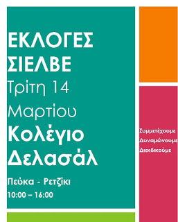 Με τους ιδιωτικούς εκπαιδευτικούς να ψηφίζουν αύριο 14 Μαρτίου στο Κολέγιο Δελασάλ, 10:00 - 16:00 στην περιοχή Πεύκα (Ρετζίκι) συνεχίζονται οι εκλογές του συλλόγου μας. Οι συνάδελφοι που εργάζονται σε γειτονικά σχολεία της Δυτικής Θεσσαλονίκης καλό είναι να ενημερώσουν και όσους τυχόν δεν το έχουν πληροφορηθεί. Ημερομηνία Τόπος Ώρες Τρίτη 14-3-2017 Κολέγιο Δελασάλ 10:00 – 16:00 Τετάρτη 15-3-2017 Ξενοδοχείο Imperial, Αντιγονιδών 13 14:00 – 20:00 Πέμπτη 16-3-2017 Κολέγιο Ανατόλια 10:00 – 16:30 Παρασκευή 17-3-2017 Αμερικανική Γεωργική Σχολή 12:00 – 16:00 Σάββατο 18-3-2017 Ξενοδοχείο Imperial, Αντιγονιδών 13 10:00 – 17:00 Δευτέρα 20-3-2017 Εκπαιδευτήρια Απόστολος Παύλος 11:00 – 16:00