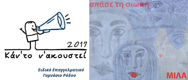 Το Ειδικό Επαγγελματικό Γυμνάσιο Ρόδου συμμετέχει στον σχολικό διαγωνισμό "Κάν'το ν'ακουστεί" του European School Radio στην κατηγορία Ραδιοφωνικό Μήνυμα. Τίτλος μηνύματος "Σπάσε την σιωπή. Μίλα!". Η σιωπή άλλους τους κάνει χαρούμενους και άλλους τους πνίγει. Οι μαθητές και μαθήτριες εκφράζουν τα συναισθήματα που βιώνουν στη σιωπή και στο τέλος όλοι συμφωνούν ότι, η σιωπή πρέπει να σπάσει. Μας προτρέπουν να μιλήσουμε, να επικοινωνήσουμε για να αλλάξουμε τον κόσμο!.Σας ζητάμε να στηρίξετε την προσπάθεια των παιδιών ψηφίζοντας τα, ώστε να διεκδικήσουν το βραβείο κοινού. Για να ακούσετε το μήνυμα τους και να ψηφίσετε (πατήστε την καρδούλα κάτω από το μήνυμα) ακολουθήστε πατώντας τον σύνδεσμο http://tiny.cc/to79 και πάτε στην 79η συμμετοχή.Σας ευχαριστούμε θερμά και σας παρακαλούμε να κοινοποιήσετε το παρόν μήνυμα σε όσους περισσότερους μπορείτε.