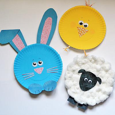 Πασχαλινά ζωάκια Με πολύ απλά υλικά (χάρτινα πιάτα, χρωματιστά χαρτόνια κόλλα, μαρκαδόροι ή άλλα χρώματα, κορδέλες, βαμβάκι, πλαστικά ματάκια, μπορείτε να φτιάξετε πασχαλινά ζωάκια. Επιλέξτε τα σχέδια που θέλουν τα παιδιά και ξεκινήστε! Πάρτε ιδέες από τις φωτογραφίες. Φατσούλες λαγουδάκια (για τα μουστάκια θα χρειαστείτε σύρμα πίπας- έτσι λέγεται και θα τα βρείτε σε διάφορα χρώματα σε βιβλιοπωλεία ή σε μαγαζιά με είδη χειροτεχνίας. Κάντε τα πόδια τσακίζοντας τα χαρτόνια Άσκηση λεπτής κινητικότηταςΑκολουθήστε βήμα βήμα τις εικόνες και φτιάξτε μια υπέροχη δραστηριότητα λεπτής κινητικότητας και για μικρότερα παιδιά. Κι αν σας άρεσαν αυτά, μπορείτε να φτιάξετε πολλά περισσότερα ζωάκια!