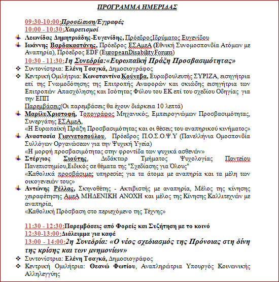 Λάβαμε και δημοσιεύουμε το πρόγραμμα της Ημερίδας για την Ευρωπαϊκή Πράξη Προσβασιμότητας που θα πραγματοποιηθεί την Παρασκευή 25 Νοεμβρίου, 09:30-15:00, στο Ίδρυμα Ευγενίδου, στο Π.Φάληρο.