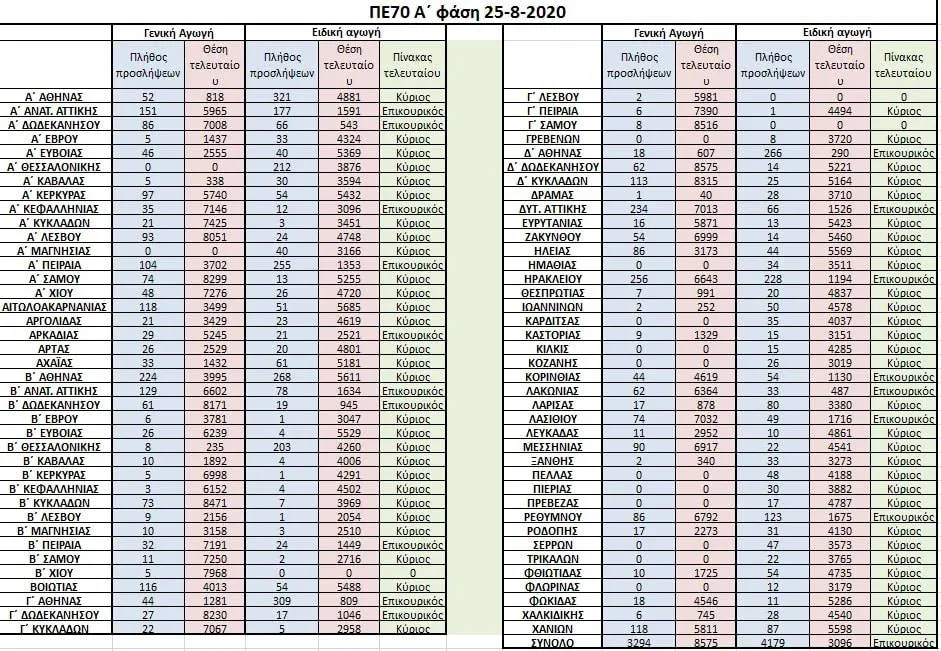 Εκκαθαρισμένοι πίνακες δασκάλων και νηπιαγωγών εδώ και η εικόνα με την περσινή πρώτη φάση αναπληρωτών, φυσικά από την επεξεργασία του Βασίλη Τιμπλαλέξη.
