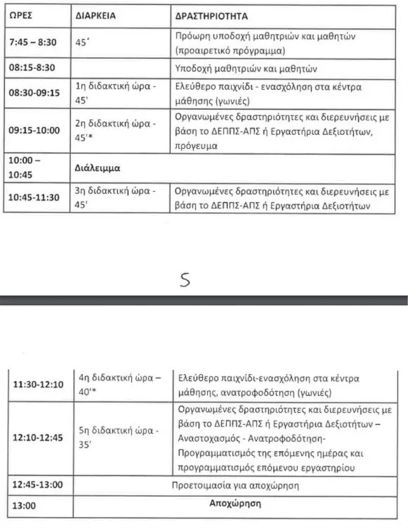 Μένουν ως έχουν η ώρα προσέλευσης των μαθητών και έναρξης (στις 8:30) των μαθημάτων, όπως και η λήξη των μαθημάτων στις 13:00.