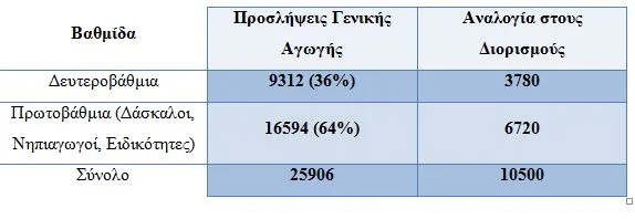 Για τη δίκαιη κατανομή των 10500 διορισμών η αναλογία που προκύπτει σύμφωνα με τις πραγματικές ανάγκες από τις προσλήψεις αναπληρωτών της τελευταίας σχολικής χρονιάς είναι η ακόλουθη: