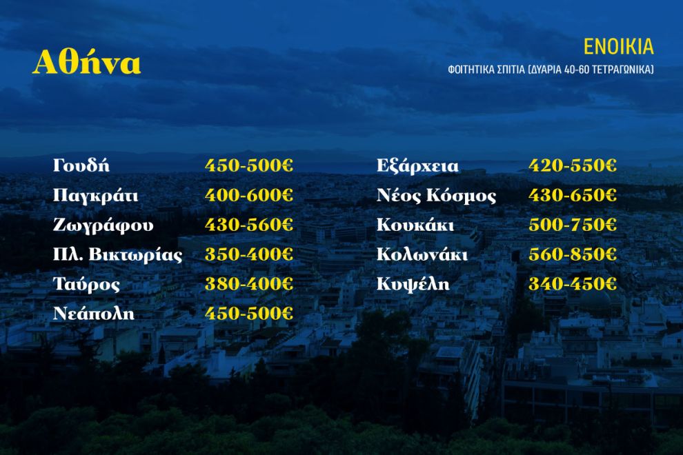 ΠΟΥ ΚΥΜΑΙΝΟΝΤΑΙ ΤΑ ΕΝΟΙΚΙΑ ΣΤΙΣ ΦΟΙΤΗΤΙΚΕΣ ΠΟΛΕΙΣ