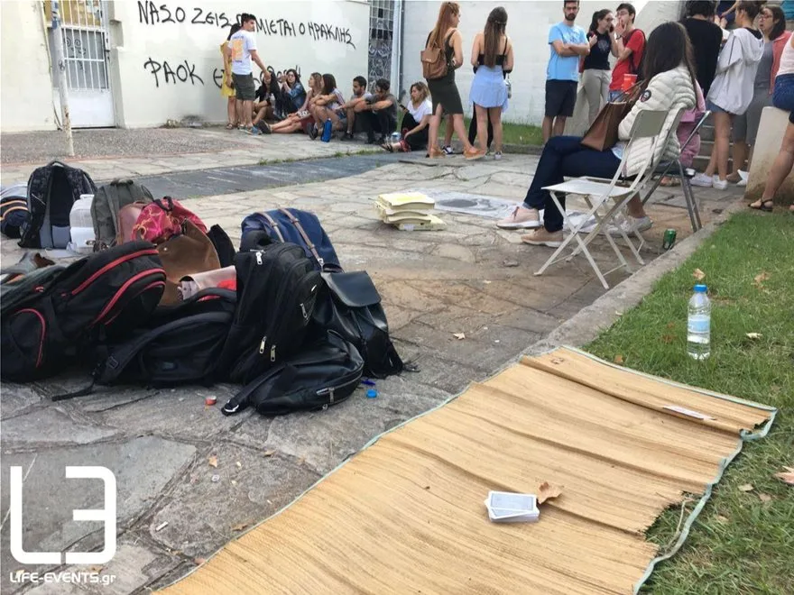 Πολλοί πήγαν με καρέκλες, μαξιλάρια, ψάθες, άφησαν την τσάντα τους ώστε να πιάσουν θέση, αφού στις 8 άνοιξε η γραμματεία και άρχισε η εγγραφή στη σχετική λίστα.