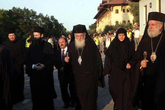 Στην Ιερά Αγρυπνία που τελέστηκε παρουσία πολύ μεγάλου αριθμού πιστών – είναι ενδεικτικό πως oι πιστοί που προσήλθαν στην Ιερά Μονή μετέλαβαν από 10 Άγια Ποτήρια – και η οποία ολοκληρώθηκε στις 4.30 τα ξημερώματα, προεξήρχε ο Μακαριώτατος και συμμετείχαν οι Σεβασμιώτατοι Μητροπολίτες Κασσανδρείας κ. Νικόδημος, Σερρών κ. Θεολόγος, Σύρου κ. Δωρόθεος και Μεσσηνίας κ. Χρυσόστομος και ο Πρωτοσύγκελλος της Ι. Αρχιεπισκοπής Αθηνών, Πανοσ. Αρχιμανδρίτης Συμεών Βολιώτης.