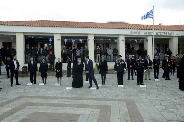 Το πρωί τελέστηκε Δοξολογία για την εθνική επέτειο στον Ι. Ναό Γεννήσεως του Χριστού και ακολούθησε επιμνημόσυνη δέηση και η μαθητική παρέλαση με τα λιγοστά παιδιά του Άη Στράτη.