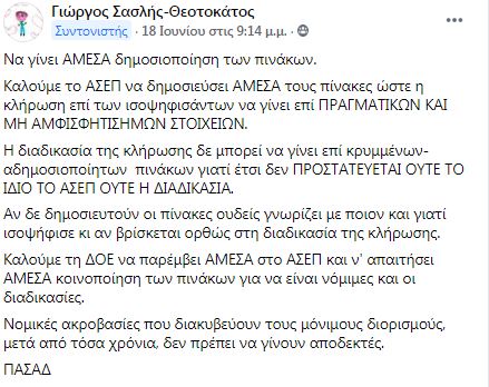 Αν δε δημοσιευτούν οι πίνακες ουδείς γνωρίζει με ποιον και γιατί ισοψήφισε κι αν βρίσκεται ορθώς στη διαδικασία της κλήρωσης.