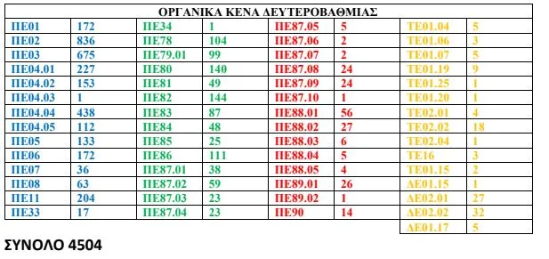 Η Πανελλήνια Ένωση Αναπληρωτών Δευτεροβάθμιας Εκπαίδευσης σε ανακοίνωση της δημοσιεύει τα οργανικά κενά της Δευτεροβάθμιας Εκπαίδευσης.
