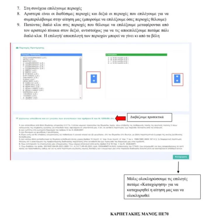 Τα βήματα της αίτησης στον ΟΠΣΥΔ για μόνιμο διορισμό (δήλωση περιοχών) σε εικόνες κοινοποίησε ο εκπαιδευτικός κλάδου ΠΕ70 Μάνος Καρπετάκης.
