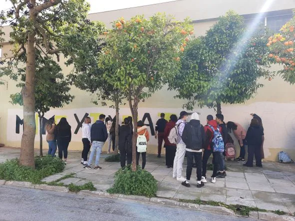 Οι μαθητές του 2ου γυμνασίου Δραπετσώνας έσβησαν χυδαία οπαδικά συνθήματα από τον τοίχο του σχολείου τους και έγραψαν μη «με χτυπάτε άλλο» στη μνήμη του αδικοχαμένου Άλκη.