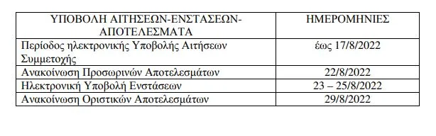 Σύμφωνα με τον προγραμματισμό της ΕΕΤΑΑ, τα προσωρινά αποτελέσματα θα βγουν 22/8, οι ενστάσεις θα ξεκινήσουν στις 23-25/8 ενώ τα τελικά αποτελέσματα θα βγουν 29/8.