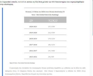Δημοσιεύθηκε για 7η συνεχόμενη χρονιά από τον ειδησεογραφικό οργανισμό “US News”, η παγκόσμια κατάταξη Πανεπιστημίων «Best Global University Ranking 2021».