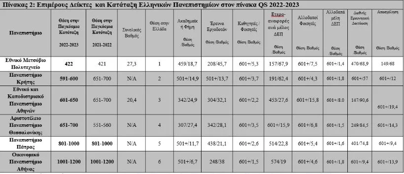 Κριτήριο Κατάταξης Θέση Παγκοσμίως το 2022-2023 Μεταβολή Θέσης σε σχέση με το 2021-2022