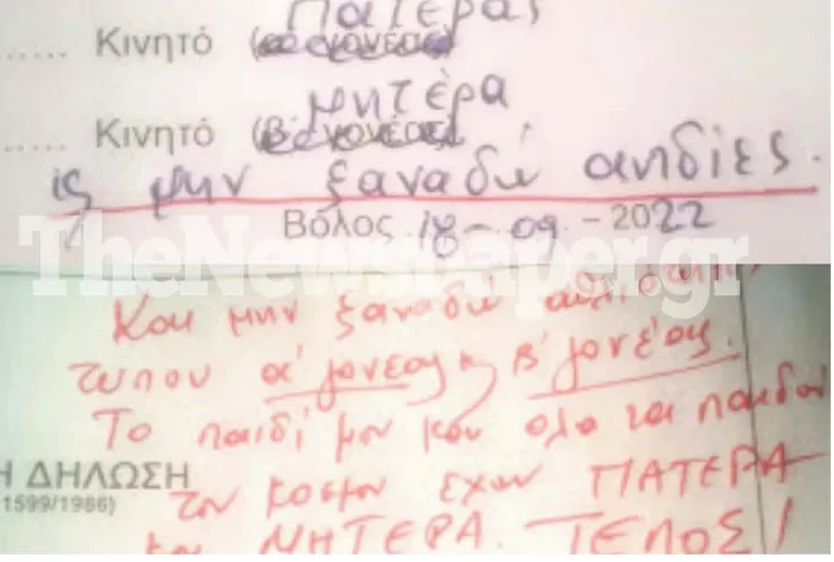 Τι αναφέρει ο πατέρας ενός μαθητή σε σχολείο του Βόλου – Έξαλλος με τη φόρμα του υπουργείου Υγείας που αναφέρεται σε «Α’ Γονέα» και «Β’ Γονέα». Σύμφωνα με το TheNewspaper, σε υπεύθυνη δήλωση που κλήθηκε να υπογράψει ο πατέρας για θέμα που αφορά στη λειτουργία του σχολικού συγκροτήματος, έσβησε τις λέξεις αυτές και τις αντικατέστησε […]