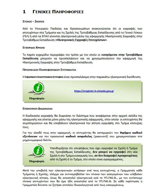 Εγγραφές πρωτοετών – eregister.it.minedu.gov.gr