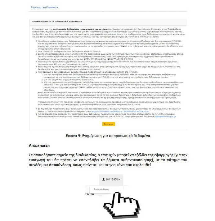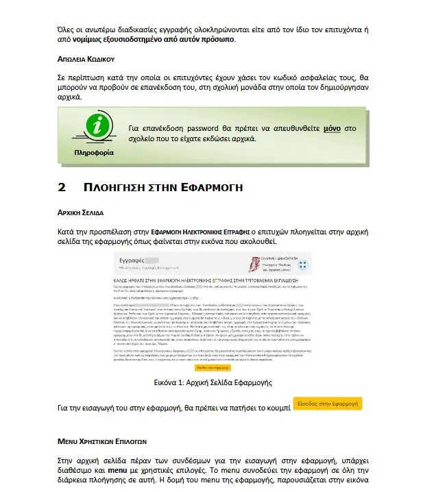 Για την πρόσβαση στην ηλεκτρονική εφαρμογή οι σχολικές μονάδες θα παρέχουν υποστήριξη στους επιτυχόντες όσον αφορά τους κωδικούς πρόσβασης, ενώ μετά την είσοδο στην εφαρμογή θα υπάρχει διαθέσιμο αναλυτικό εγχειρίδιο χρήσης για τη διευκόλυνσή τους, καθώς και συνοπτικές οδηγίες σε κάθε βήμα.