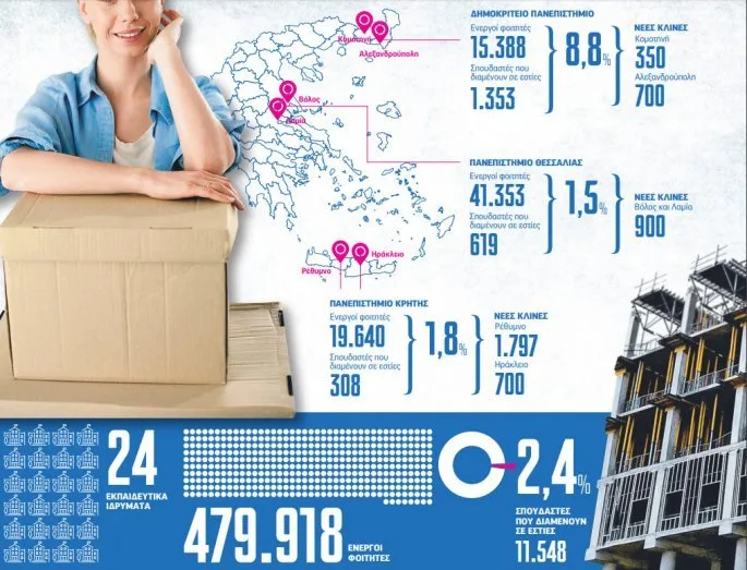 Σπουδαστές που διαμένουν σε εστίες: 11.548 (2,4%)
