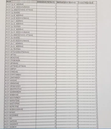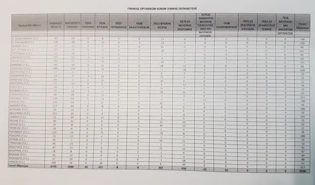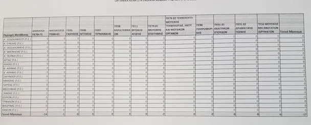 Τα κενά ανά κλάδο και ειδικότητα είναι αναλυτικά τα παρακάτω: