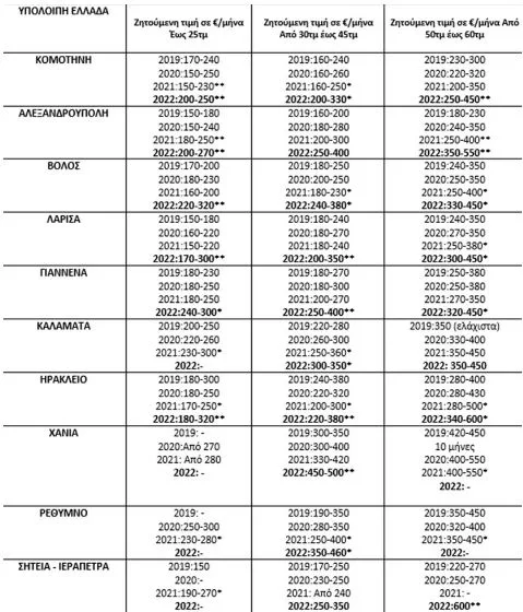 Οι ζητούμενες τιμές μίσθωσης σε 22 Φοιτητουπόλεις