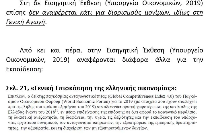 Η Υπουργός Παιδείας στη σχετική ομιλία της στη Βουλή στις 16/12/2019 (Υπουργείο Παιδείας, 2019)[1] μίλησε για 5.250 διορισμούς στη Γενική Αγωγή – πέραν των ήδη 4.500 διορισμών στην Ειδική. Το απόσπασμα από την επίσημη ομιλία της έχει ως εξής: