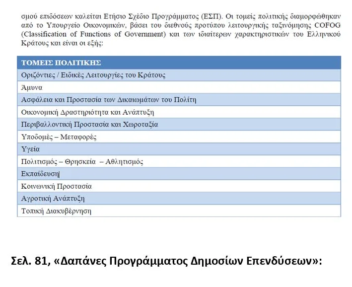 Ωστόσο, στο κείμενο του προϋπολογισμού (Υπουργείο Οικονομικών, 2019, σ. 149) δεν αναφέρεται κάτι πιο συγκεκριμένο: