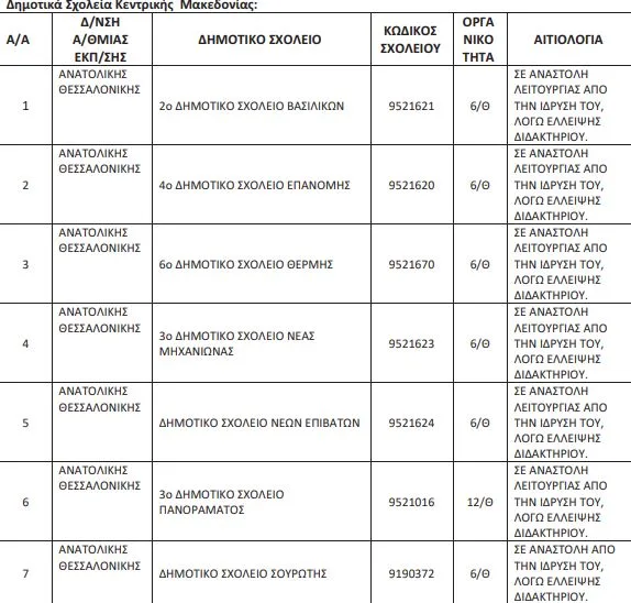 Αναστολή λειτουργίας Δημοτικών Σχολείων και Νηπιαγωγείων Κεντρικής Μακεδονίας για το σχολικό έτος 2022-2023.