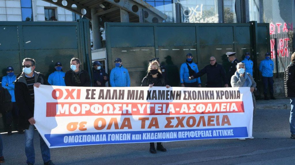 Τηρώντας όλα τα απαραίτητα μέτρα προστασίας, εκπαιδευτικοί, γονείς και Φοιτητικοί Σύλλογοι με παράσταση διαμαρτυρίας που πραγματοποίησαν στο υπουργείο Παιδείας απαίτησαν τη λήψη μέτρων για την προστασία της υγείας μαθητών και εκπαιδευτικών, αλλά και την απόσυρση του νομοσχεδίου για την Ανώτατη Εκπαίδευση.