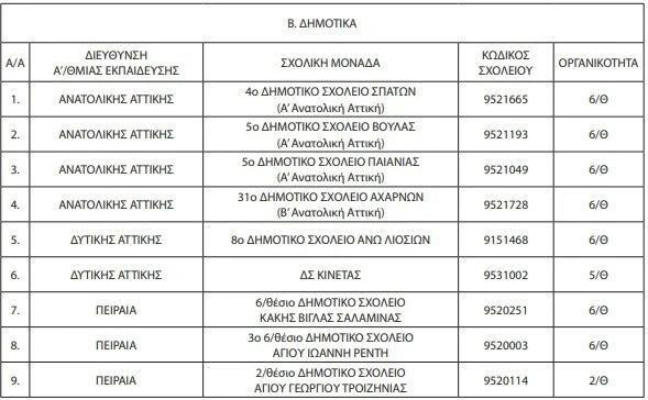 Αττική: Ποιά είναι τα 31 σχολεία που κλείνουν – Με ανακοίνωση της Περιφέρειας Αττικής που δημοσιεύτηκε σε ΦΕΚ κοινοποιείται η λίστα με τα 22 νηπιαγωγεία και τα 9 δημοτικά που βάζουν λουκέτο, λόγω έλλειψης μαθητικού δυναμικού, έλλειψης κτηριακών υποδομών, τις τοπικές γεωγραφικές συνθήκες, και τις ιδιαιτερότητες κάθε περιοχής.