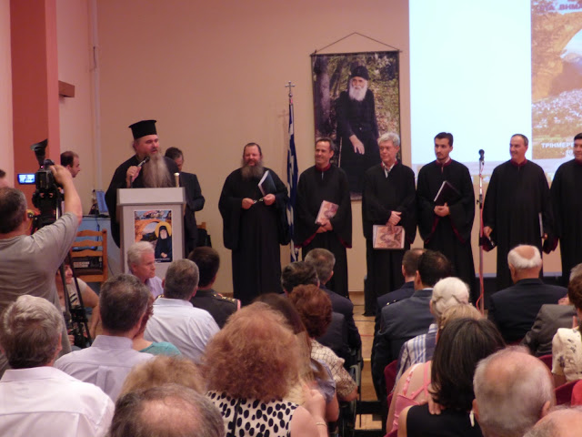 Μετὰ τὸ πέρας τῆς Θείας Λειτουργίας διενεμήθη σὲ ὅλο τὸ ἐκκλησίασμα ἐνθύμιο τῆς πρώτης, μετὰ τὴν ἁγιοκατάταξη τοῦ Ὁσίου, πανηγυρικῆς Θείας Λειτουργίας επὶ τῇ μνήμῃ του. Ἀκολούθησε σύντομη δεξίωση στὸ Δημαρχειακὸ Μέγαρο καὶ ἐπίκαιρη ὁμιλία τοῦ Σεβασμιωτάτου Μητροπολίτου Μεσογαίας καὶ Λαυρεωτικῆς κ.κ. Νικολάου ἀναφορικὰ μὲ τὴν μορφὴ τοῦ Ὁσίου. Ὁ Σεβασμιώτατος κ. Νικόλαος ἀναφέρθηκε στὸ σύνδεσμο τοῦ Ὁσίου μὲ τὴν Κόνιτσα ἀλλὰ καὶ σὲ ὅλα ἐκείνα τὰ χαρακτηριστικὰ ποὺ κάνουν τὸν Ἅγιο Παΐσιο οἰκουμενικὸ Ἅγιο.