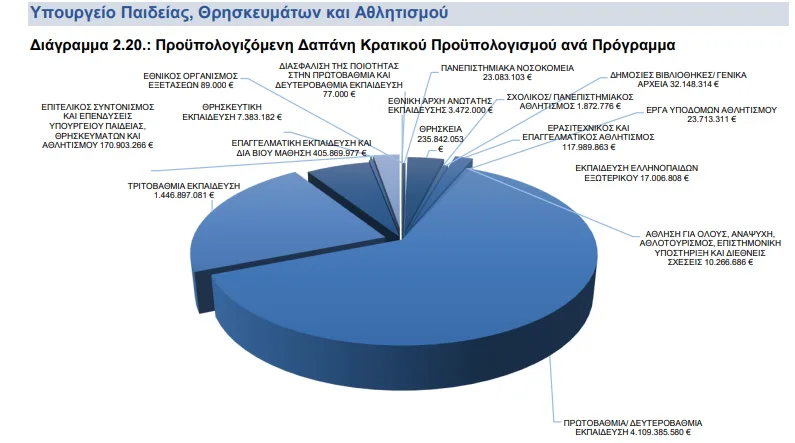 Κατατέθηκε προς συζήτηση στη Βουλή των Ελλήνων ο κρατικός προϋπολογισμός του έτους 2025 και αναφορικά με το Υπουργείο Παιδείας, Θρησκευμάτων και Αθλητισμού οι προβλέψεις δαπανών του τακτικού προϋπολογισμού για το οικονομικό έτος 2025 ανέρχονται στο ποσό των 5.594 εκατ. ευρώ, αυξημένες σε σχέση με τον αρχικό προϋπολογισμό του 2024 κατά 141 εκατ. ευρώ, γεγονός που οφείλεται κατά κύριο λόγο: