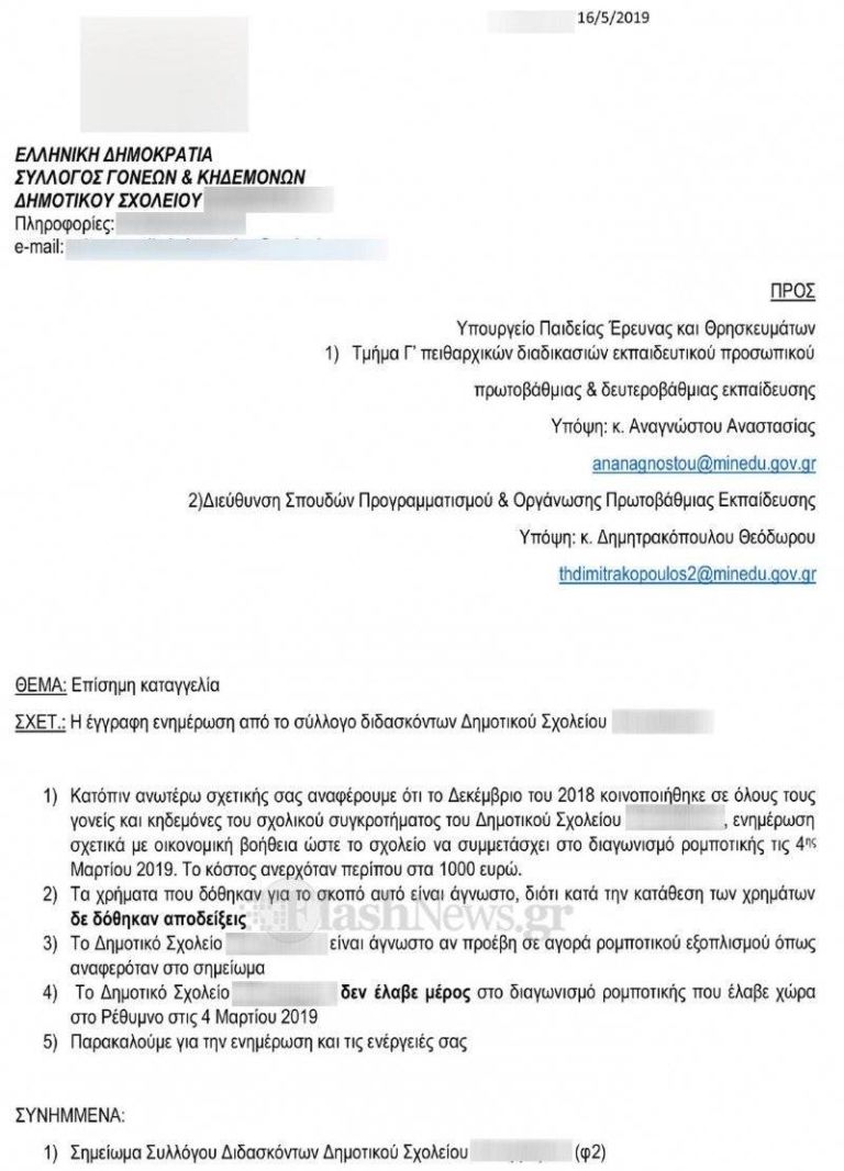 Το θέμα όμως είναι ότι παρόλο που τα χρήματα δόθηκαν, το σχολείο ούτε έλαβε μέρος στον διαγωνισμό, ούτε αγοράστηκε κάποιος εξοπλισμός ρομποτικής για το σχολείο, ούτε δόθηκαν αποδείξεις κατά την κατάθεση των χρημάτων.