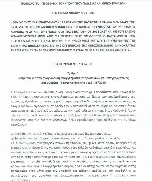 «Με μια αιφνιδιαστική πρωτοβουλία το Υπουργείο Παιδείας κατέθεσε τροπολογία, με πρωτοβουλία της κυρίας Κεραμέως, για την αναγνώριση των επαγγελματικών προσόντων όσων σπούδασαν κάποια θέματα μηχανικών στην αλλοδαπή. Και βάζει μπροστά, ψευδόμενο, το κοινοτικό δίκαιο και τις απόψεις της Ευρωπαϊκής Επιτροπής.