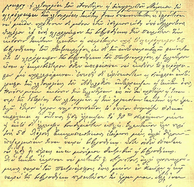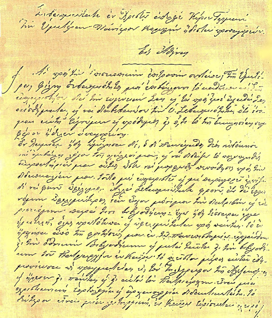 Ἀπό τήν ἐν συνεχείᾳ σύντοµη ἔρευνά µου βεβαιώθηκα ὅτι πράγµατι ἡ ἐπιστολή, πού δηµοσιεύουµε στό τεῦχος µας αὐτό, οὔτε ἔχει ἄλλοτε δηµοσιευθεῖ, οὔτε ἔχει γίνει γνωστό τό περιεχόµενό της σάν προϊόν προφορικῆς πληροφορίας.
