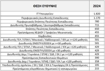 Επίδομα θέσης ευθύνης: Επιπλέον 195 ευρώ μικτά για υποδιευθυντή, 358-501για διευθυντή, 455 για Σύμβουλο,715 για ΔΙΠΕ-ΔΙΔΕ, 1.170 για ΠΔΕ, 1.820 για ΓΓ Υπουργείου, κτλ. Αυτά τα ποσά αυξήθηκαν πρόσφατα κατά 30% (Νόμος 5045/2023).