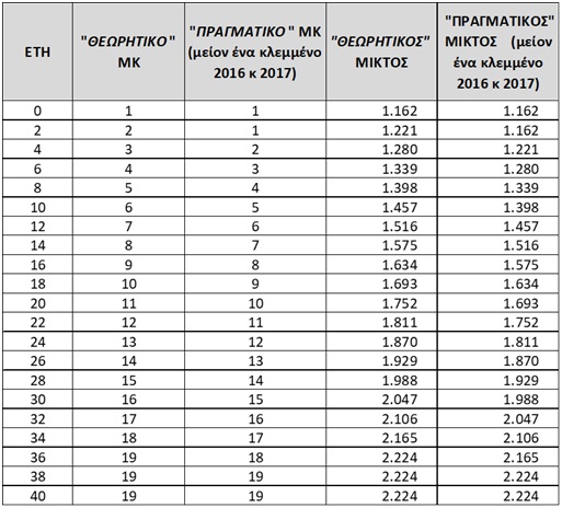 Η εικόνα που προκύπτει είναι αυτή που φαίνεται στον παρακάτω Πίνακα.