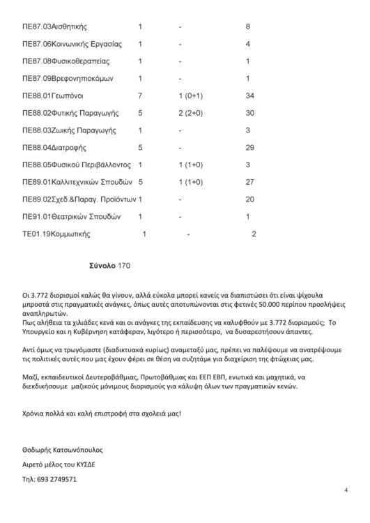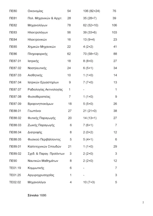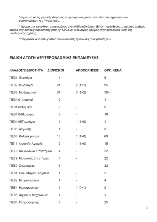 -την κατανομή ανά κλάδο/ειδικότητα, βάσει (αν)επίσημων δημοσιευμάτων σε εκπαιδευτικούς ιστοτόπους,