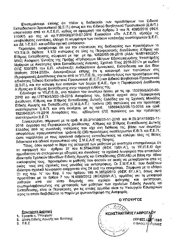 Ο ΥΠΟΥΡΓΟΣ ΠΑΙΔΕΙΑΣ ΓΙΑ ΤΙΣ ΠΡΟΣΛΗΨΕΙΣ Ε.Ε.Π. ΚΑΙ Ε.Β.Π. ΣΤΗΝ ΔΥΤΙΚΗ ΕΛΛΑΔΑ