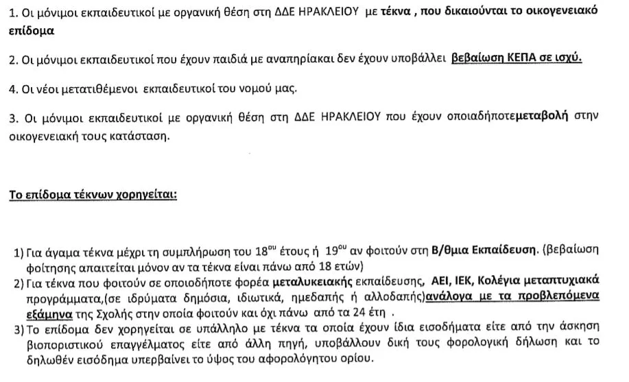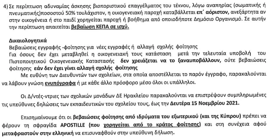 Οικογενειακό Επίδομα: Οδηγίες για τους εκπαιδευτικούς