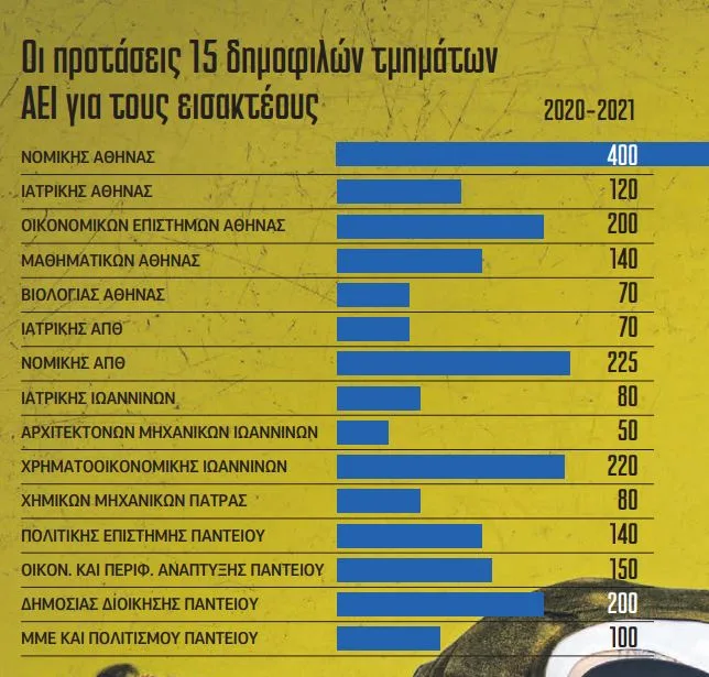 Πέρσι το ίδρυμα ζήτησε συνολικά 880 εισακτέους για όλα του τα τμήματα, τελικά όμως ο αριθμός ανέβηκε στους 1.687, δηλαδή τους διπλάσιους. Και φέτος το συγκεκριμένο ίδρυμα θα κάνει ανάλογη πρόταση.