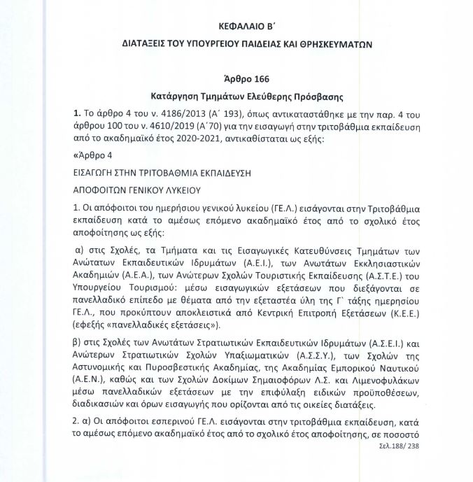 Πανελλήνιες 2020: Τι αναφέρεται στο νομοσχέδιο του Υπουργείου Παιδείας αναφορικά με την εισαγωγή στην Τριτοβάθμια Εκπαίδευση.