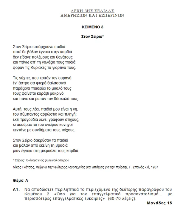 Η εξεταστέα ύλη και τα θέματα των εξετάσεων είναι κοινά για όλους τους υποψηφίους από τα ημερήσια και εσπερινά ΓΕΛ.