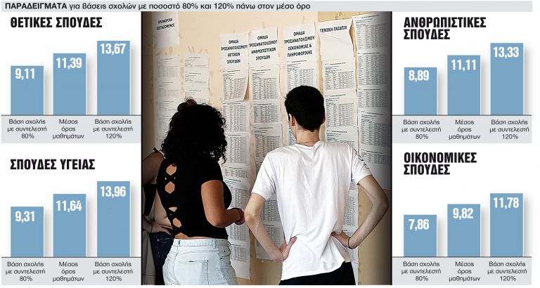 Ωστόσο, ούτε αυτό λύνει το πρόβλημα, καθώς έτσι οι κατώτερες βαθμολογίες εισαγωγής θα αυξηθούν και μπορεί να δούμε τα… αντίστροφα αποτελέσματα και υποψηφίους να μην μπαίνουν στα πανεπιστήμια με βαθμολογίες άνω των 10.000 μορίων.