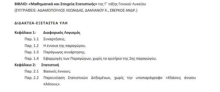 ΜΑΘΗΜΑΤΙΚΑ (ΑΛΓΕΒΡΑ) ΒΙΒΛΙΟ: «Μαθηματικά και Στοιχεία Στατιστικής» της Γ΄ τάξης Γενικού Λυκείου (ΣΥΓΓΡΑΦΕΙΣ: ΑΔΑΜΟΠΟΥΛΟΣ ΛΕΩΝΙΔΑΣ, ΔΑΜΙΑΝΟΥ Χ., ΣΒΕΡΚΟΣ ΑΝΔΡ.)