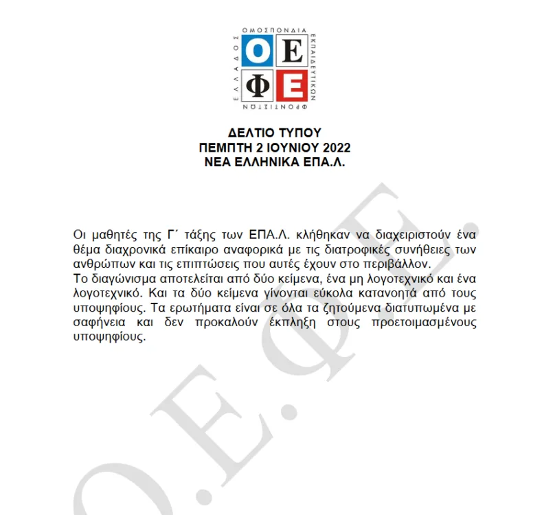 Ο σχολιασμός του ΟΕΦΕ για τα θέματα