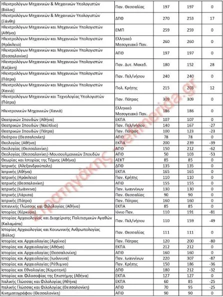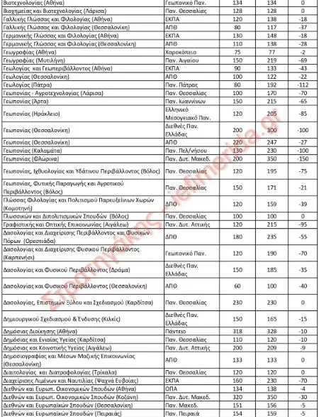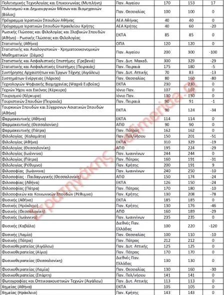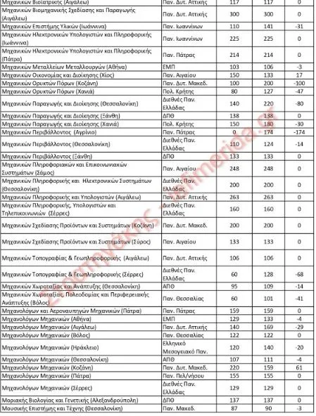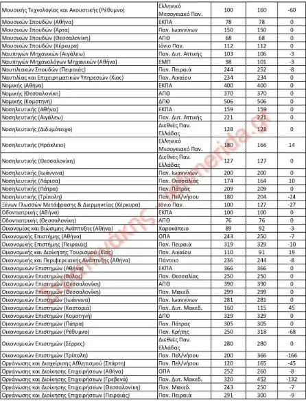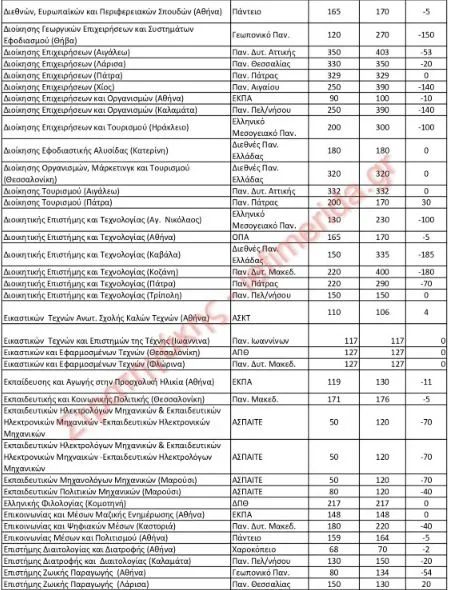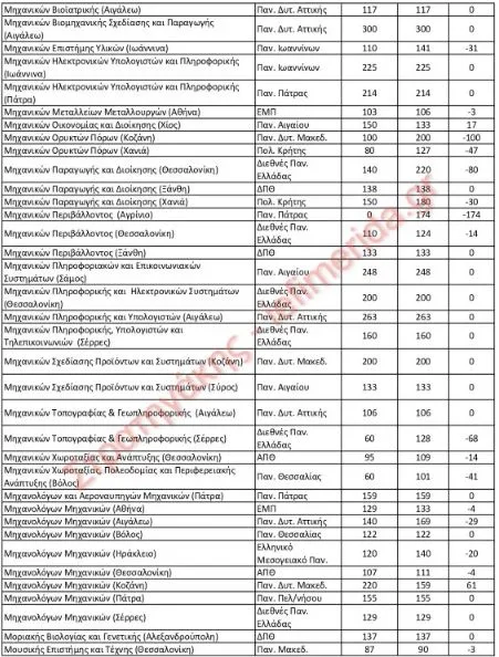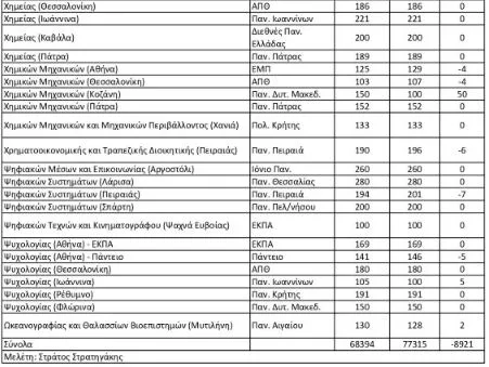 Σε έρευνα που πραγματοποίησε ο κ. Στρατηγάκης για τους αριθμούς των εισακτέων αποτυπώνει, σε 11 πίνακες, τα στοιχεία με όλες τις αυξομειώσεις για 422 τμήματα.